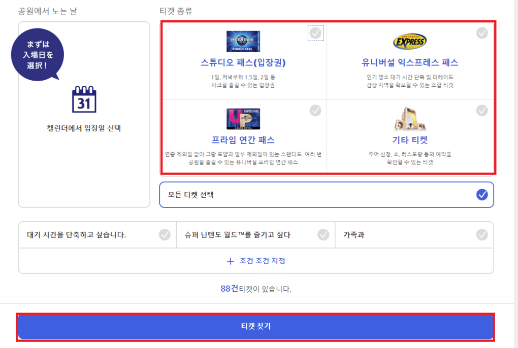 오사카 유니버셜스튜디오재팬 입장권 종류 (익스프레스 정리권 확약권)