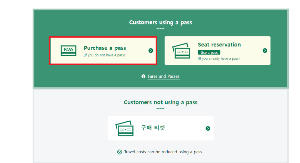 2....... Purchase a pass 혹은 패스 구매하기 클릭